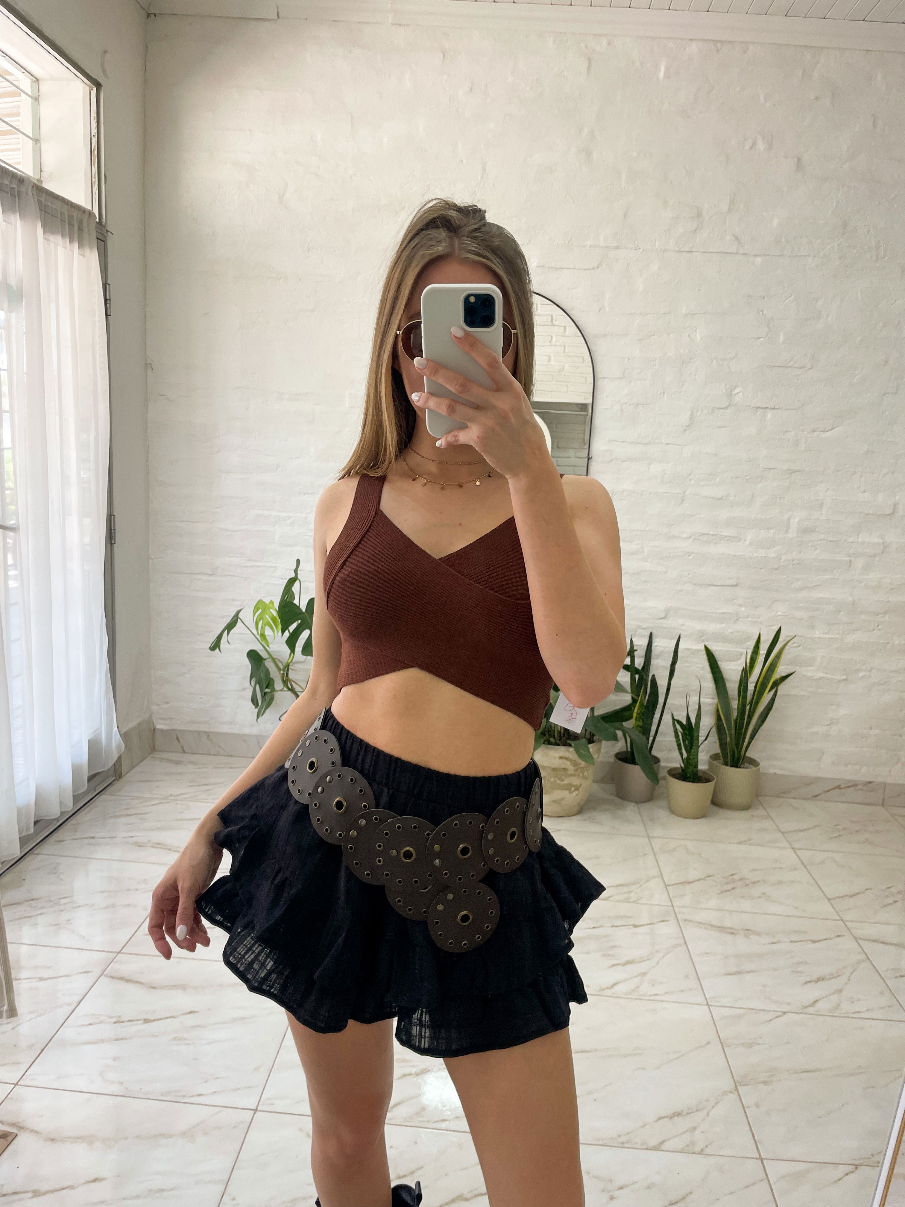 Top de tejido premium, cruzado. Tela súper elastizada.