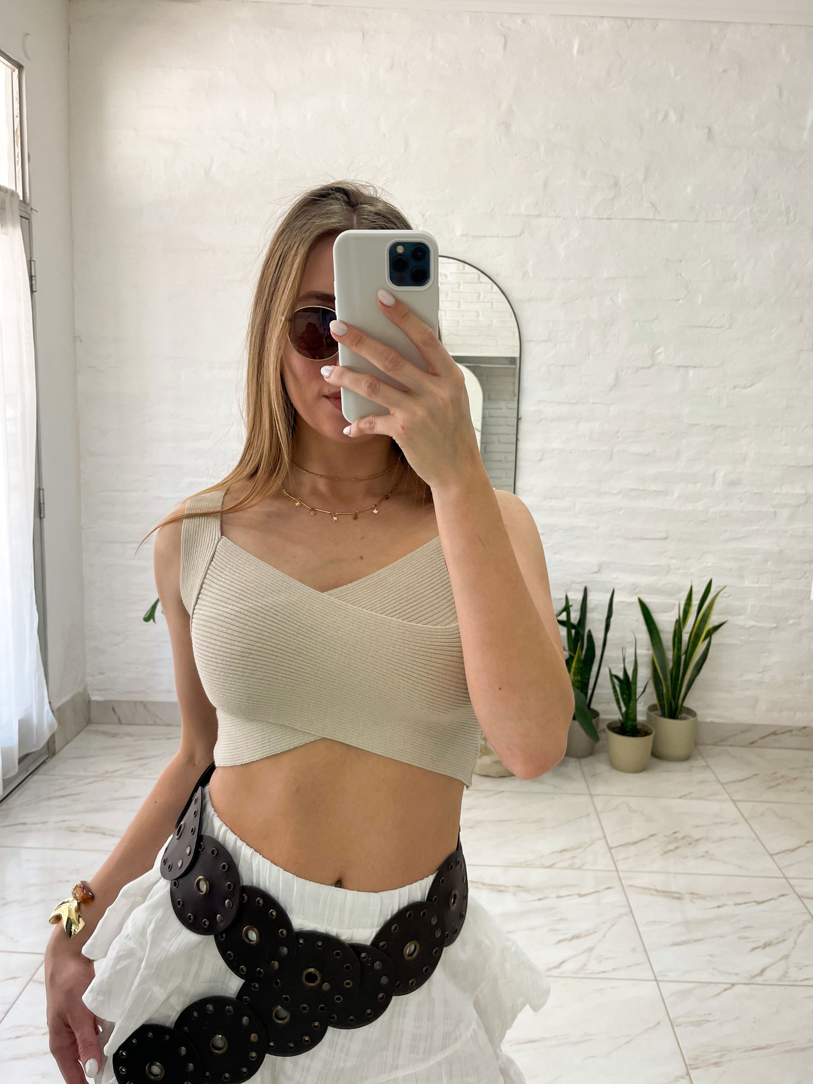 Top de tejido premium, cruzado. Tela súper elastizada.