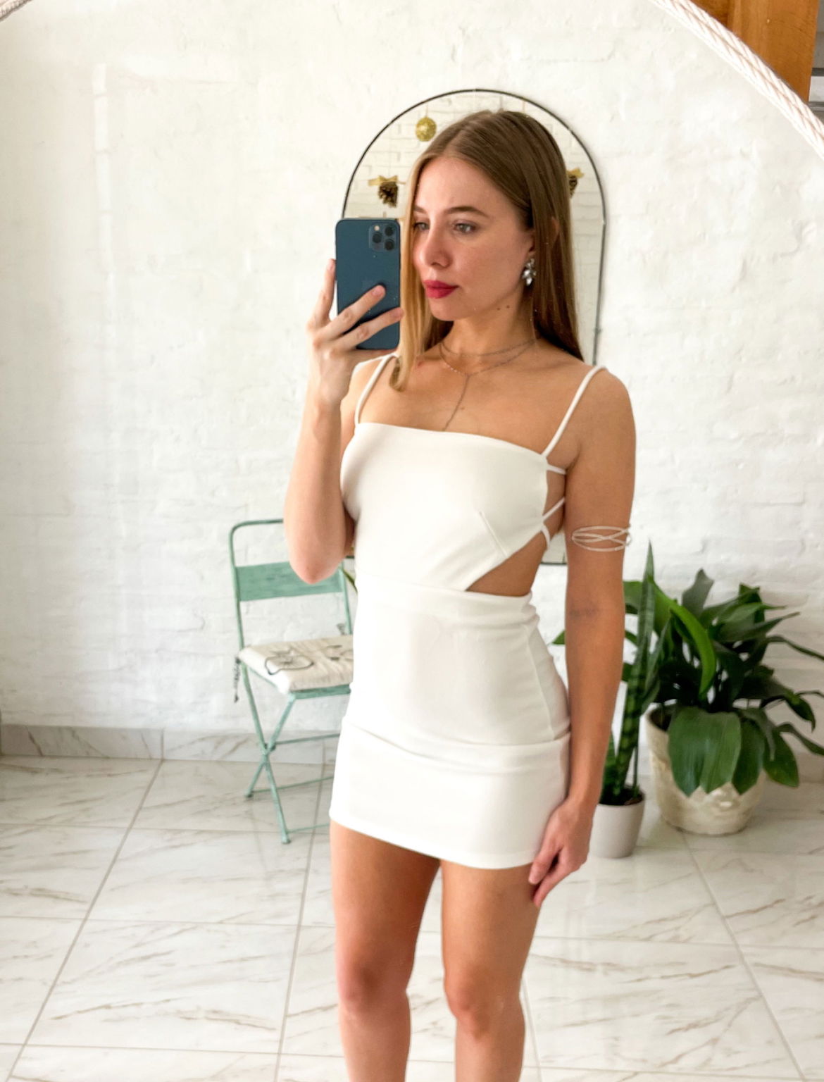 Vestido de crep elastizado, abarca talle S y M.
